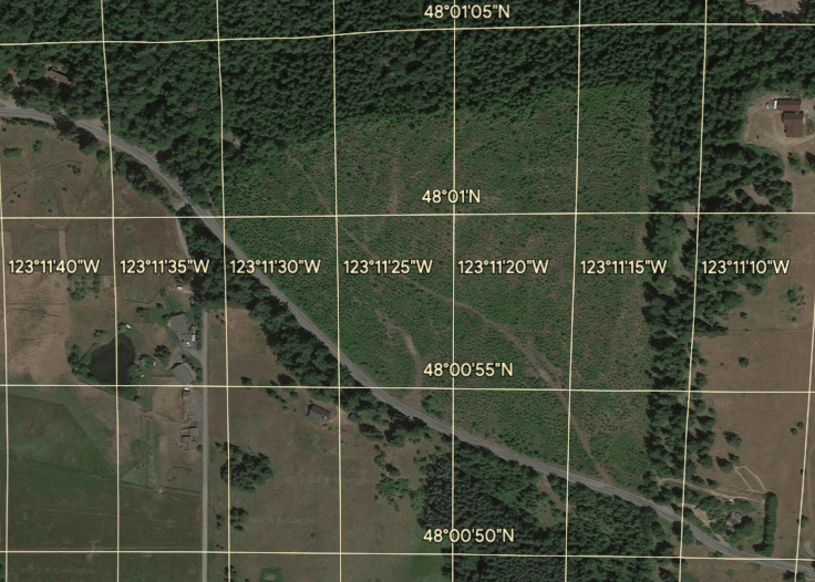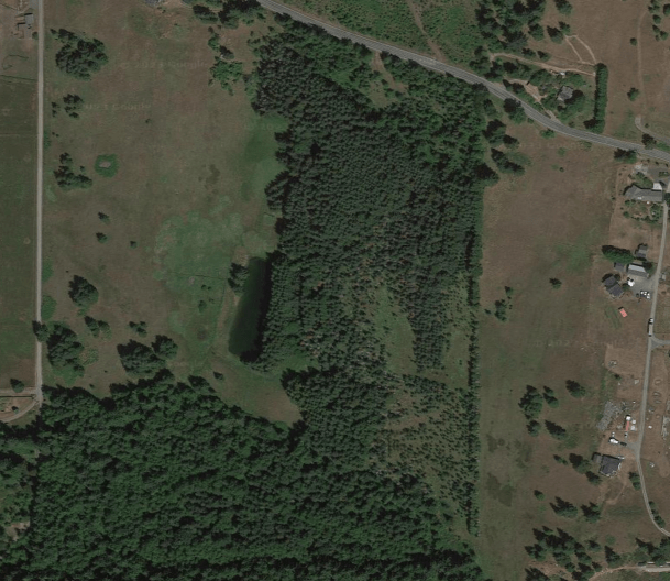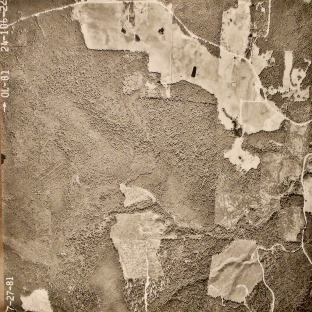 These maps give another perspective of Lost Mountain Tree Farm from government online map systems to airplane aerial views. The first maps show measurements of the property boundaries and location of government corner monuments. These monuments are cement markers that are permanent. They make it easy to survey the tree farm property lines.